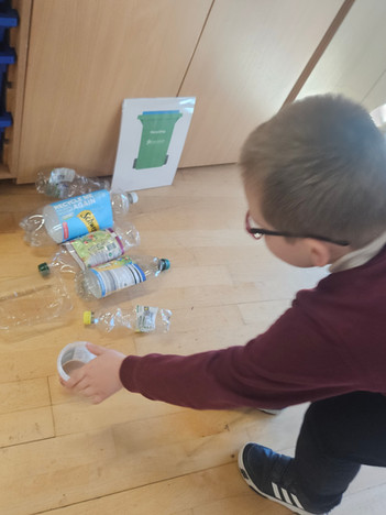 As a follow-up to our recycling assembly, Year 4 took part in a drama workshop where they met a fictional shopkeeper who had received a letter warning him about not sorting his waste properly. Drawing on what they had learnt in the assembly, the children stepped in to help!