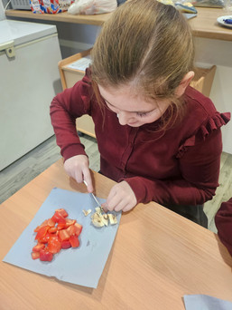 Cooking Club made a healthy spaghetti bolognese this week. The children peeled mushrooms and finely chopped them, along with peppers, before adding them to chopped tomatoes. They learnt how to hold vegetables correctly and how to cut them safely. Quorn mince was added to the sauce, and the spaghetti was carefully boiled. The children really enjoyed the session, with one saying, “I thought it was a great session because I’ve never made one before,” and another commenting, “I would like to make this with my parents at home.” One enthusiastic chef added, “I can’t wait to eat this!”
