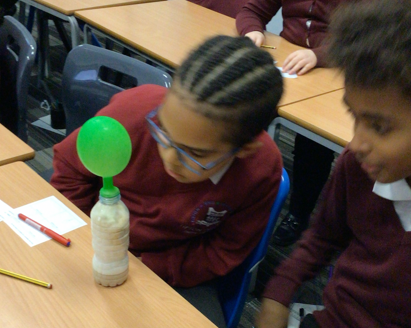To test this, we added warm water, one teaspoon of sugar, and a packet of yeast into a bottle, then carefully stretched a balloon over the top. We predicted what might happen and watched closely. Before long, we noticed the balloon beginning to inflate!